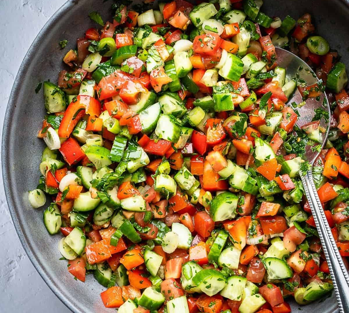 House made labneh topped with savory blend of Persian cucumber, cherry tomatoes, bell peppers, onion, parsley, pickled lemon vinaigrette and za’atar. Reference photo does not show the labneh.