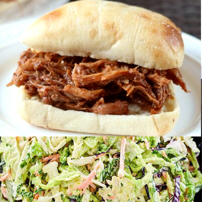 Slow-cooked pulled pork with a rustic bun (packaged separately). Delivered with coleslaw. Single serving.