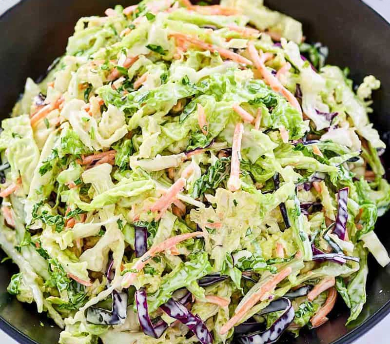This no mayo recipe balances the right tartness of cider vinegar with a hint of sweetness.